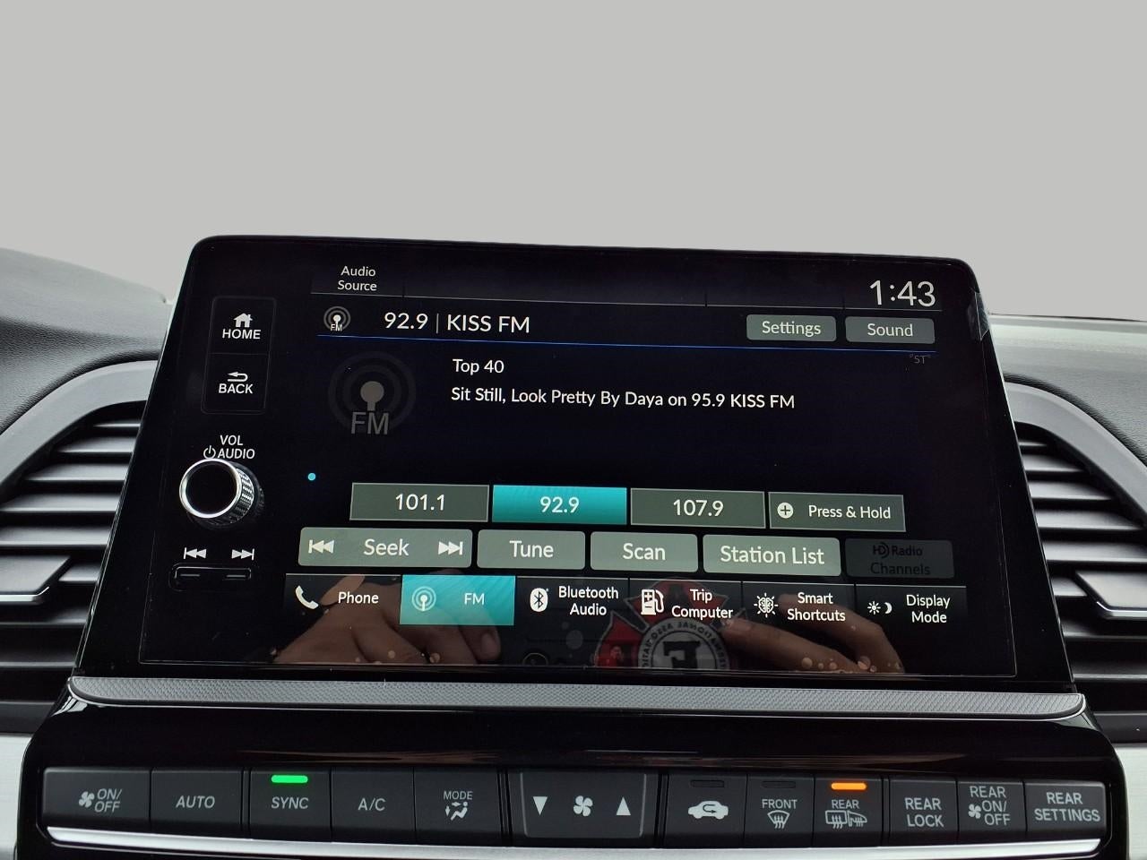 • Radio: 160-Watt AM/FM/HD/SiriusXM Audio System -inc: 7 speakers including subwoofer, 9" color touchscreen display, 7" TFT Meter, Bluetooth® HandsFreeLink, Bluetooth® streaming audio, HondaLink, Speed-Sensitive Volume Compensation (SVC), Radio Data System (RDS), wireless Apple CarPlay compatibility, wireless Android Auto compatibility, 2.5-amp USB smartphone/audio interface, CabinTalk in-car PA system, illuminated steering wheel-mounted controls and fin-type roof-mounted antenna, All SiriusXM services require a subscription, sold separately by SiriusXM after the trial period, If you decide to continue service, the plan you choose will automatically renew at the then-current rates, Fees and taxes apply, See the SiriusXM customer agreement and privacy policy at www.siriusxm.com for full terms and how to cancel, which includes calling 1-866-635-2349, Available in the 48 contiguous U.S, and D.C, Some services and features are subject to device capabilities and location restrictions, All fees, content and features are subject to change, SiriusXM, Pandora and all related logos are trademarks of Sirius XM Radio Inc, and its respective subsidiaries